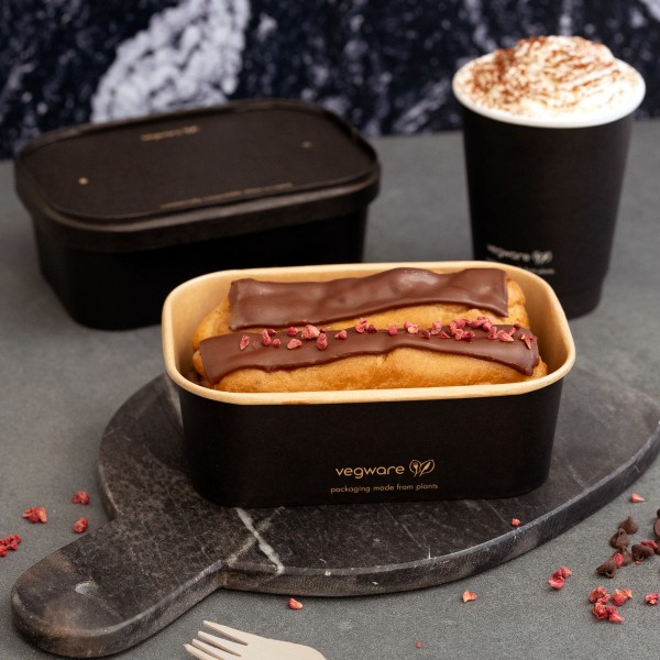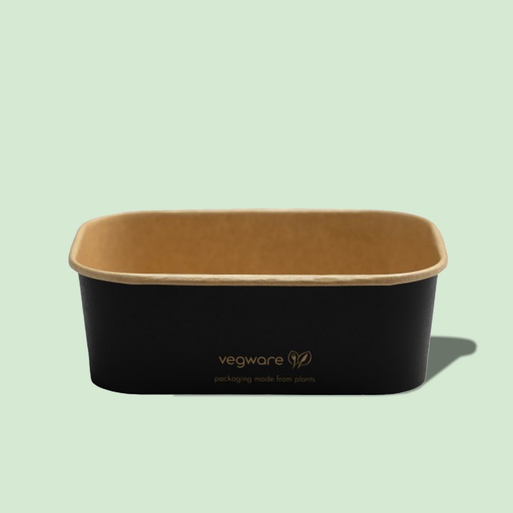 Téglalap alakú fekete papír ételtároló, 750ml-es, 50db/csomag, (6cs/#)
